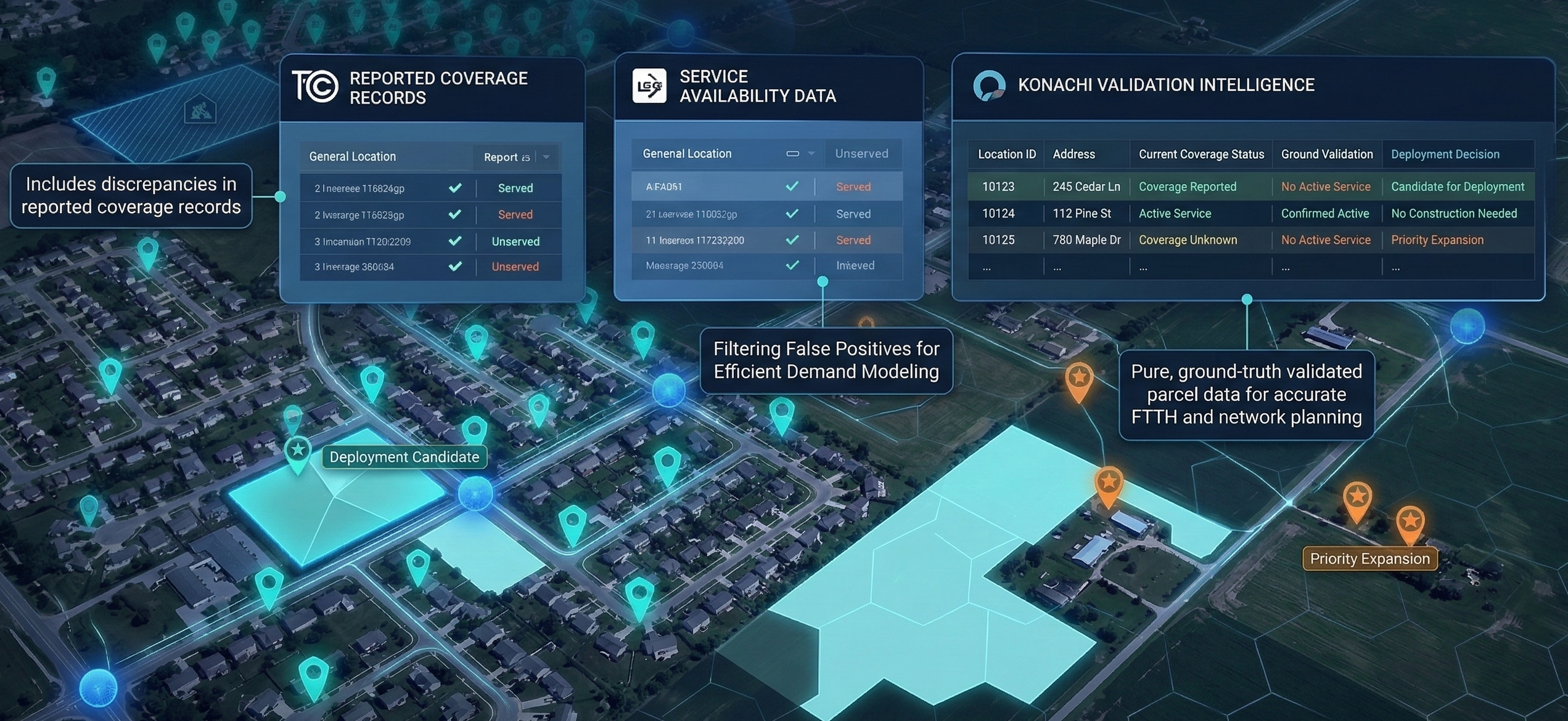 Connect with Konachi to uncover hidden serviceable locations, validate FCC data, and strengthen your broadband deployment strategy.